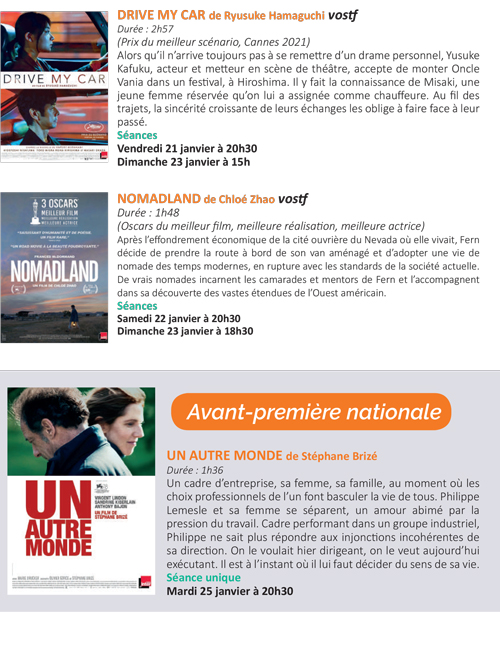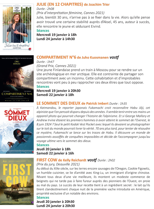 Retrouvez ci-dessous le programme de diffusion des films sélectionnés par le Cinéma L'Eden :