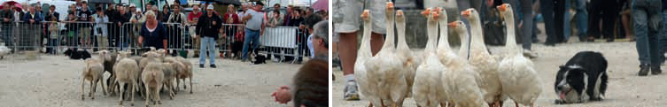 Démonstration de chiens de bergers tout l’après-midi par intermittence, avec un troupeau de moutons et un troupeau d’oies.