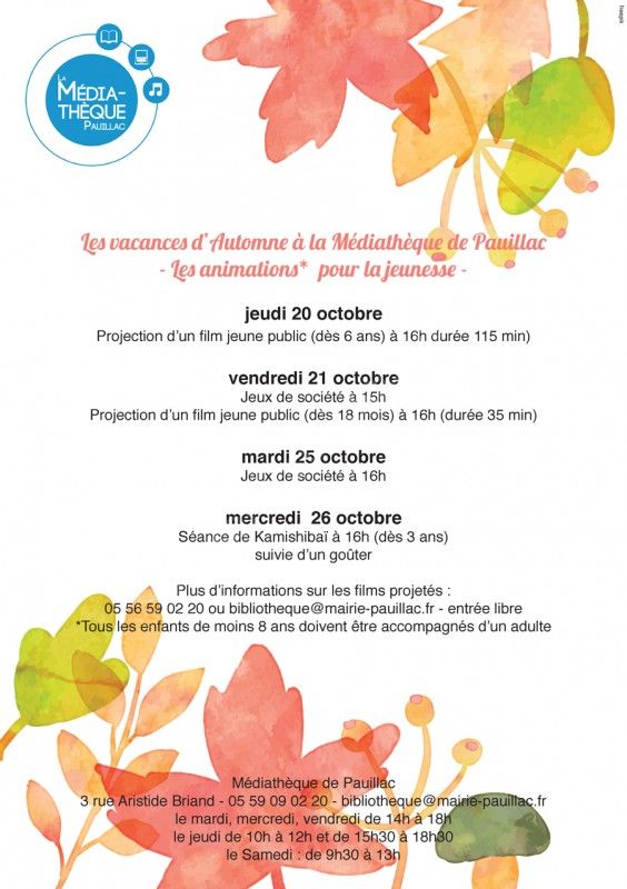 Les Vacances d'Automne à la Médiathèque de Pauillac