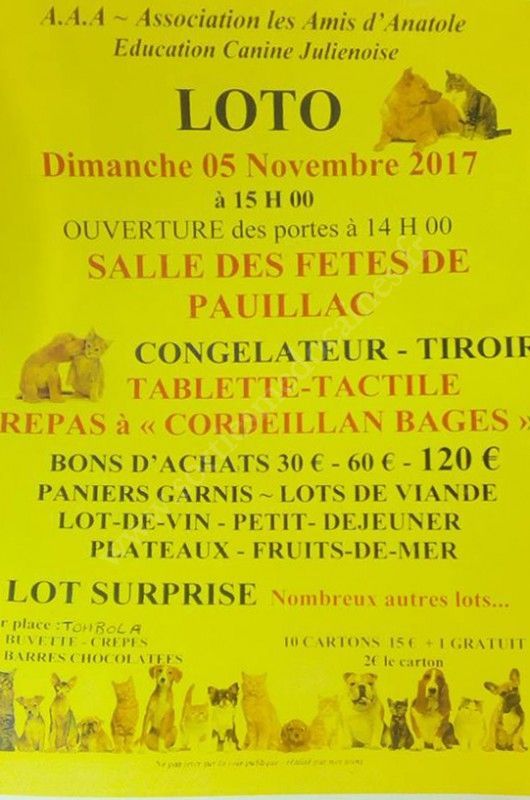 Loto organisé par l'Association les Amis d'Anatole et l'Association Education Canine Julienoise.