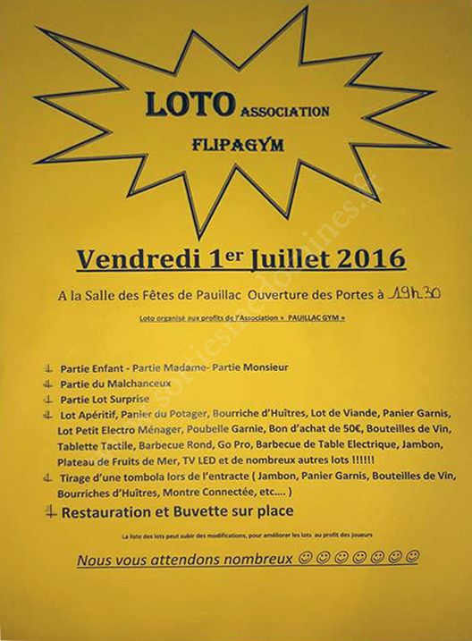 Loto organisé aux profits de l'association "Pauillac Gym".