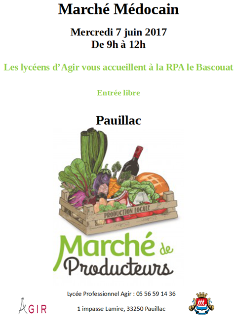 Le mercredi 7 juin 2017, les Lycéens d'Agir vous accueillent à la RPA le Bascouat pour un marché médocain.