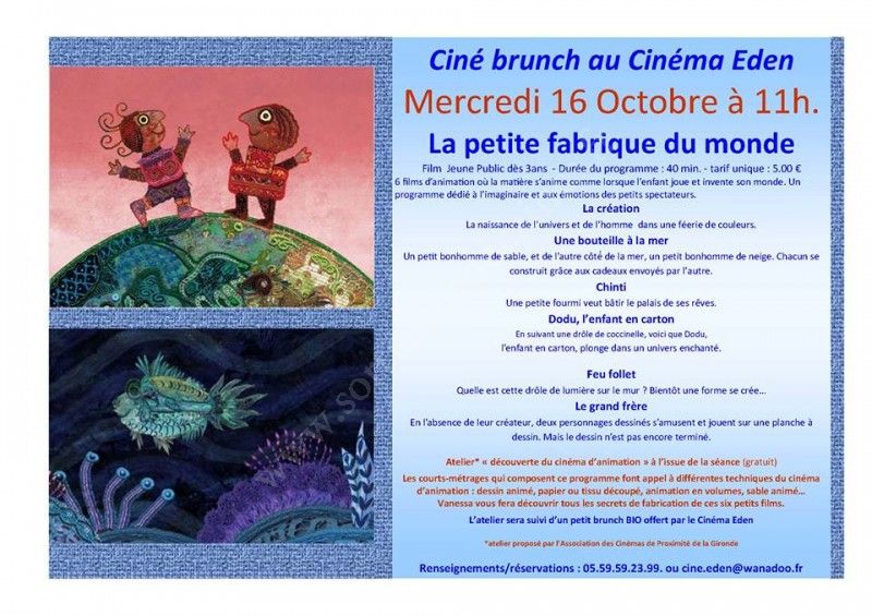 La séance sera suivie d'une animation "Découverte du Cinéma d'animation" proposé par l'Association des Cinémas de Proximité de la Gironde.