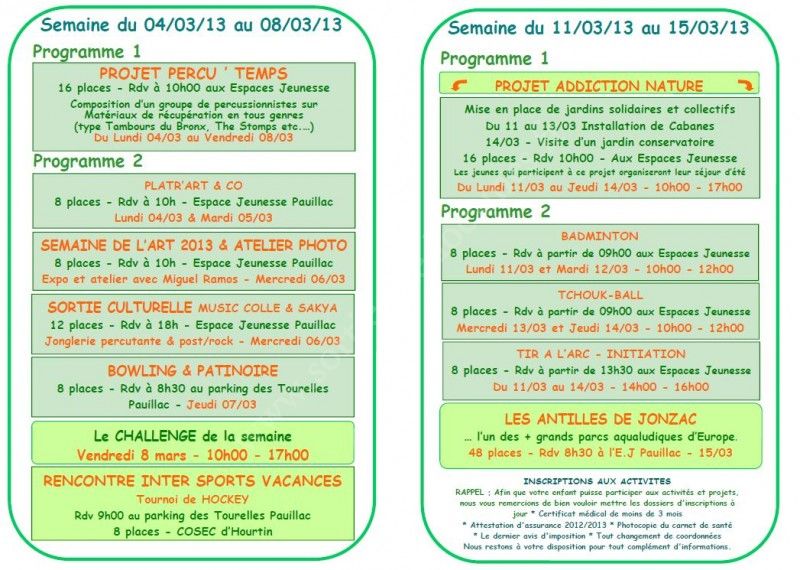- Lieu : Espaces jeunesse intercommunaux de Pauillac et St Laurent Médoc