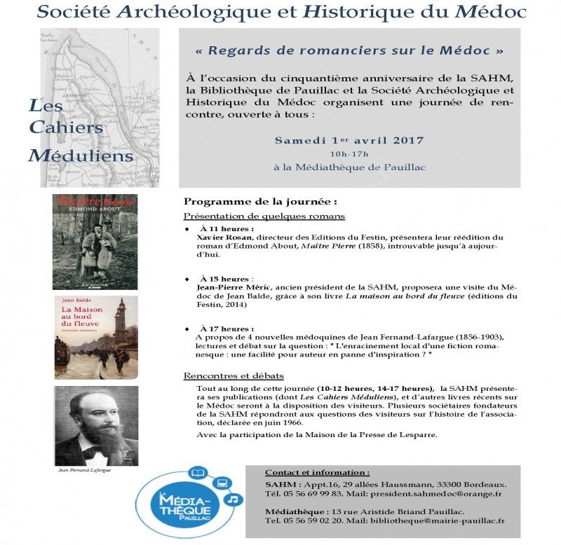 La Société Archéologique et Historique du Médoc présente sa journée "Regards de Romanciers sur le Médoc" à l'occasion de son 50ème anniversaire.