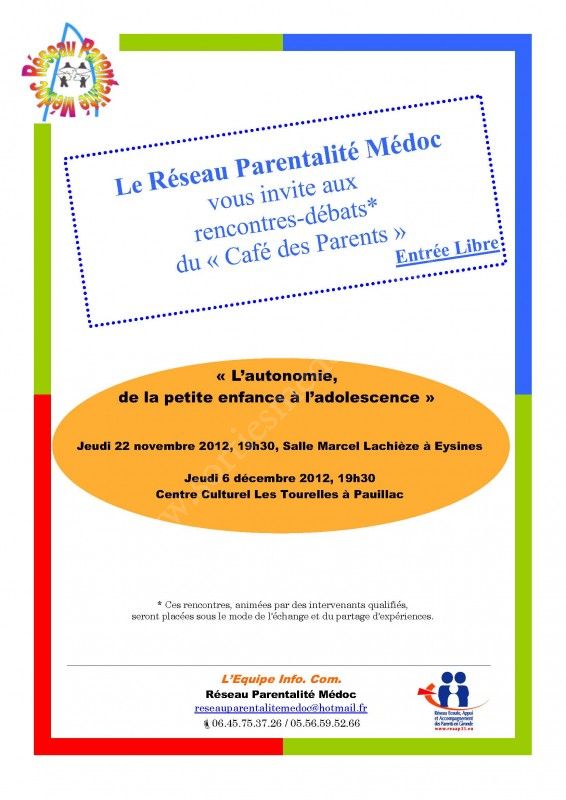 Le Réseau Parentalité Médoc vous invite aux rencontres-débats du "Café des Parents".