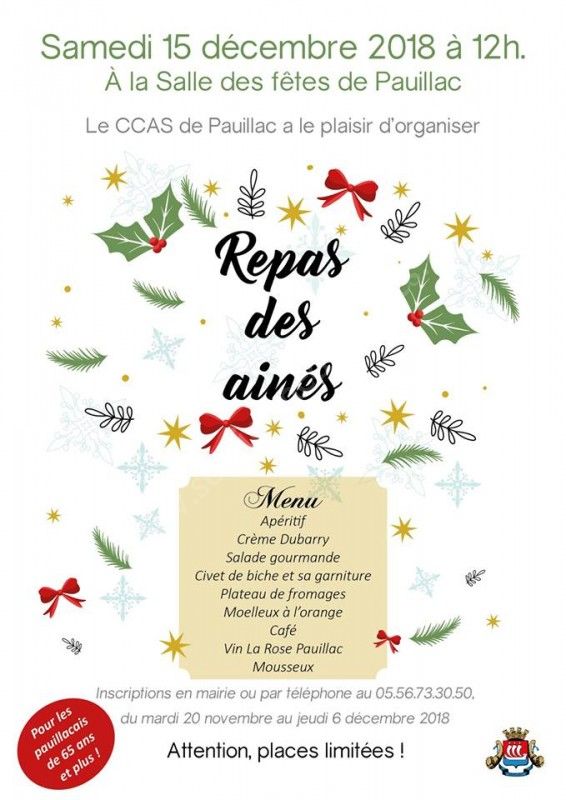 Le CCAS a le plaisir d'organiser le repas des aînés de Pauillac.