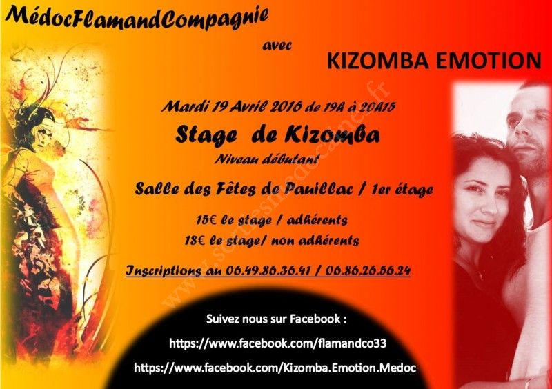 l'Association MedocFlamandCompagnie et Kizomba Emotion vous proposent un stage découverte de la danse KIZOMBA.
