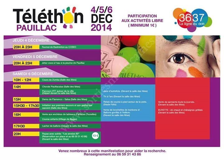 Venez participer au Téléthon de Pauillac, à cette occasion de nombreuses associations se mobilisent.