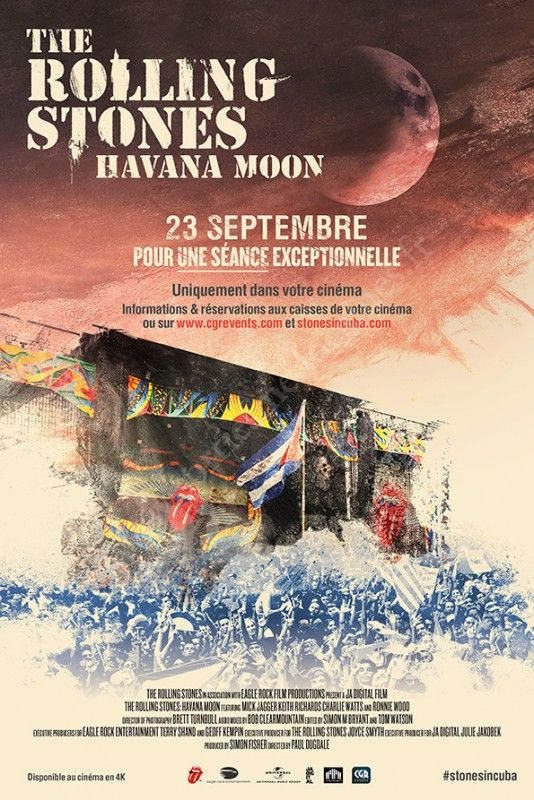 Venez voir l’ultime performance historique des Rolling Stones à Ciudad Deportiva de La Havane! Rejoignez les 1,2 millions fans euphoriques à Cuba, qui n'avaient jamais vu de concert de Rock et encore moins d’un groupe britannique d’une telle ampleur. Les Rolling Stones ont repris leurs chansons légendaires telles que "Jumpin 'Jack Flash", "Paint It Black', 'Miss You' et le favori du public 'All Down The Line'. Lorsque Mick Jagger monte sur scène, il déclare : «Nous y voilà enfin! Nous sommes sûrs que cette soirée va être un moment inoubliable, tant pour vous que pour nous.» Et il avait raison, non seulement cette soirée était inoubliable mais ce fut également une performance hors du commun, vraiment incroyable, réalisée par l'un des plus grands groupes de tous les temps. Cette retransmission au cinéma est totalement exclusive avec des images des coulisses, des chansons bonus et des interviews inédites avec les Rolling Stones.