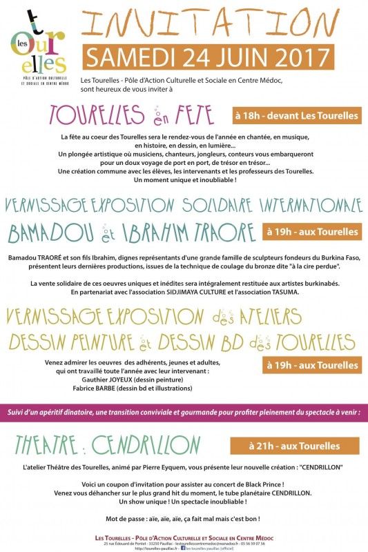 19h00 (aux Tourelles) : Vernissage exposition des ateliers dessin-peinture et dessin-BD des Tourelles