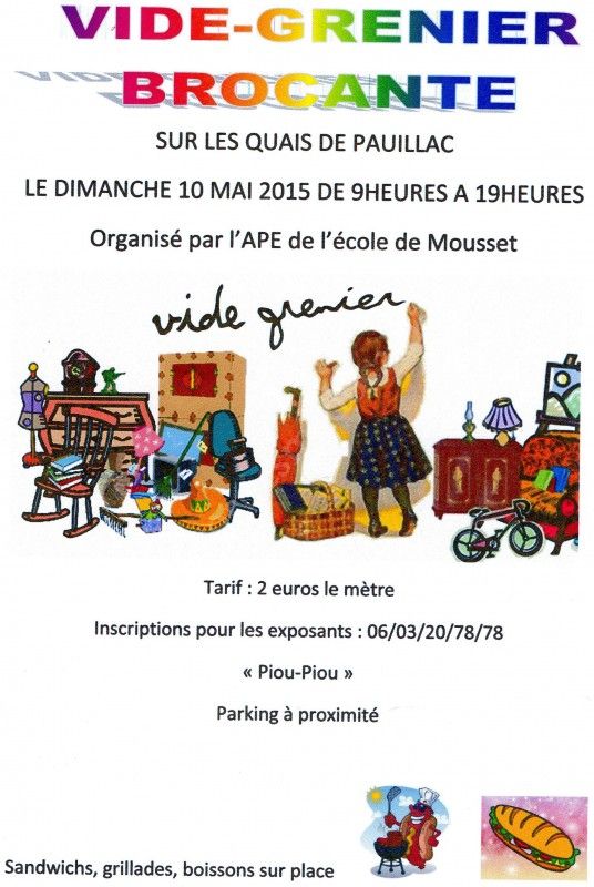 Vide-grenier, brocante, sur les quais de Pauillac, organisé par l'APE de l'école de Mousset.