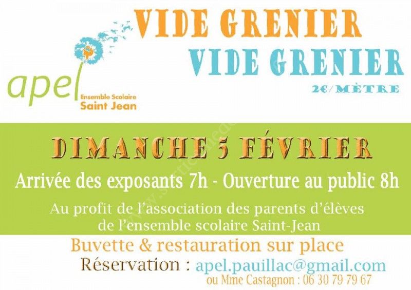 Vide-grenier organisé par l'APEL St Jean Pauillac.