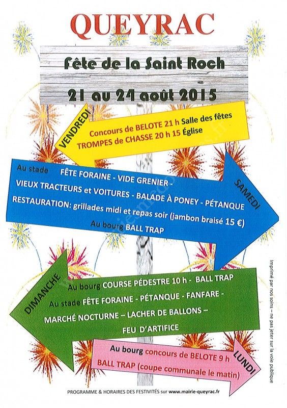 Fête de la Saint Roch du 21 au 24 août 2015, multiples activités au stade et au bourg.