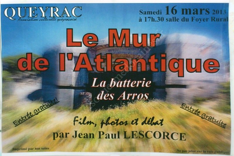 L'Association Culturelle Queyracaise vous propose un film, des photos ainsi qu'un débat sur le Mur de l'Atlantique par Jean-Paul Lescorce.