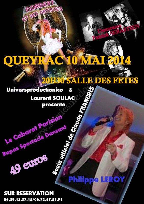 Soirée dîner spectacle Cabaret avec Norbert et ses drôles de dames, les danseuses de Patrick SEBASTIEN, et Philippe LEROY, le sosie officiel vocal et physique de Claude FRANCOIS.