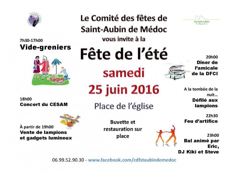 Le Comité des Fêtes de Saint-Aubin de Médoc vous invite à la Fête de l'Eté.