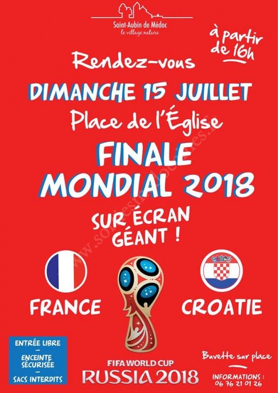Retransmission en direct sur écran géant de la finale du Mondial 2018 de foot France / Croatie, dimanche 15 juillet !