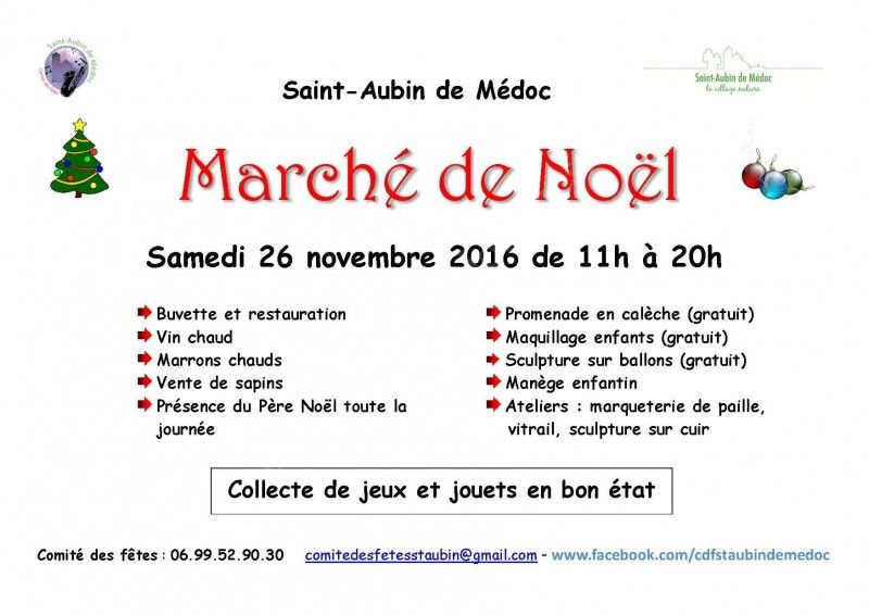 Marché de Noël à Saint-Aubin de Médoc organisé par le Comité des Fêtes.