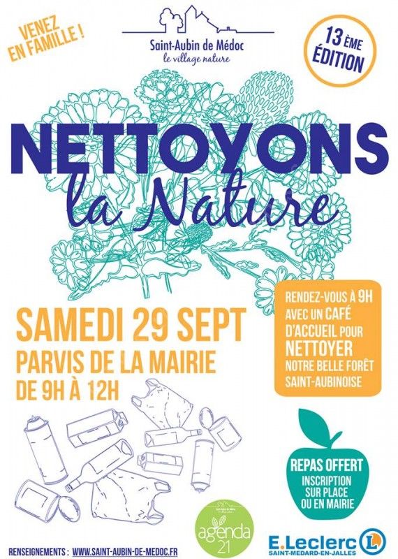 Venez nombreux participer à l'opération Nettoyons la Nature samedi 29 septembre 2018.