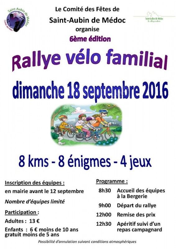 Le Comité des Fêtes de Saint-Aubin organise la 6ème édition du Rallye Vélo Familial.
