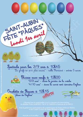 * 4 à 10 ans dans le carré vert derrière l'église - 12h30 : Omelette de Pâques