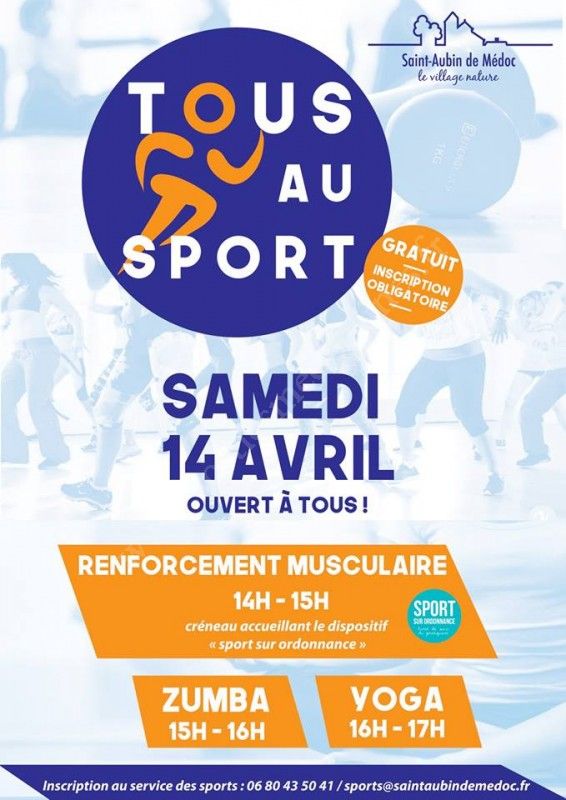 Session "Tous au Sport" le samedi 14 avril, ouvert aux adultes pratiquant ou non !