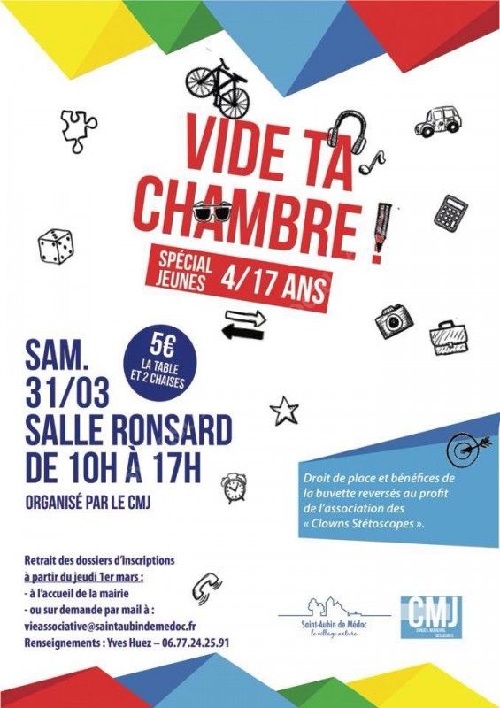 Le Conseil Municipal des Jeunes de Saint-Aubin organise au profit des "Clowns Stéthoscopes", le premier "Vide Ta Chambre", samedi 31 mars 2018.