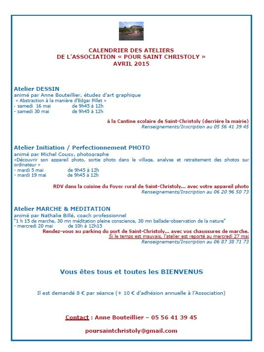 Atelier de dessin, « Abstraction à la manière d’Edgard Pillet » de 9h45 à 12h dans la cantine scolaire de SAINT-CHRISTOLY.