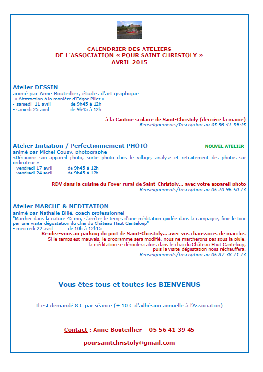 Rendez-vous au parking du Port de Saint-Christoly ... avec vos chaussures de marche.