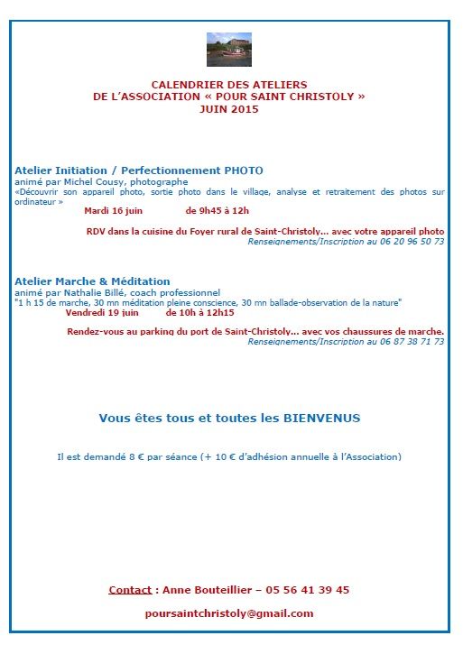 Atelier « Marche et Méditation » organisé par l’Association « Pour Saint Christoly » et animé par Nathalie Billé, coach professionnel.