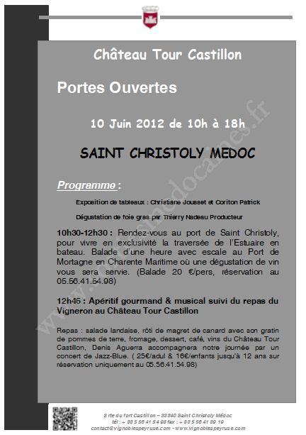 * Exposition de Christiane Jousset & Patrick Cariton (plus d'info ici : http://www.sortiesmedocaines.fr/agenda/manifestation/saint-christoly-de-medoc_christiane-jousset-et-patrick-cariton_894.html)