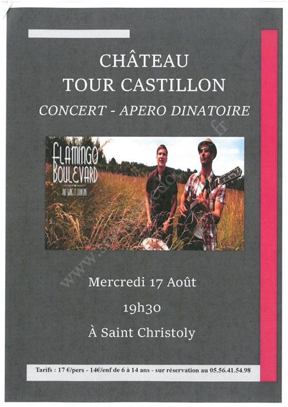 Concert et apéro dinatoire avec le duo « Flamingo Boulevard »au Château Tour Castillon à Saint-Christoly-Médoc.