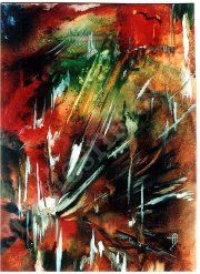 L'ambiance générale des tableaux est donnée par la peinture vitrail très lumineuse ; les mouvements, les explosions, les rythmes par la peinture acrylique qui donne du relief.