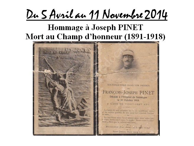 A l’occasion du centenaire de la guerre de 1914-18, la famille Héraud rend hommage à Joseph PINET (né à Saint Christoly et inscrit au monument au mort de son village), un aïeul mort au champ d’honneur en 1918.
