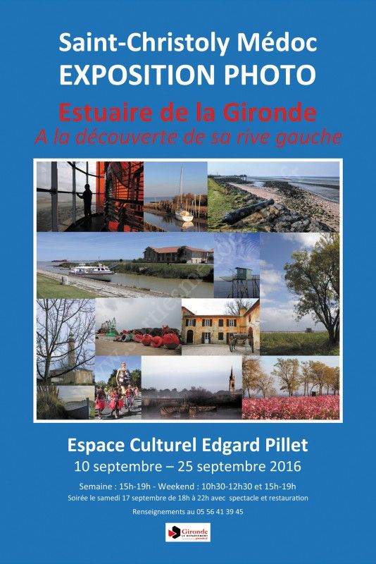 Organisée par l'Association "POUR ST-CHRISTOLY", l'Exposition Photo "Estuaire de la Gironde - A la découverte de sa rive gauche" célèbre les charmes de l'estuaire en donnant à découvrir ou à redécouvrir des lieux particulièrement emblématiques de la région.