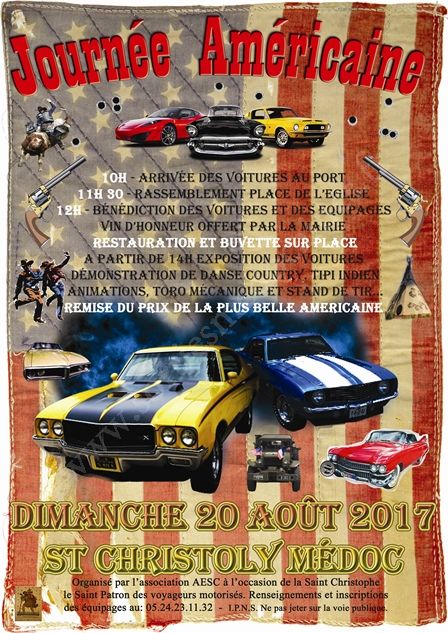 L’association AESC organise une « Journée Américaine » le dimanche 20 août 2017 à Saint Christoly de Médoc.
