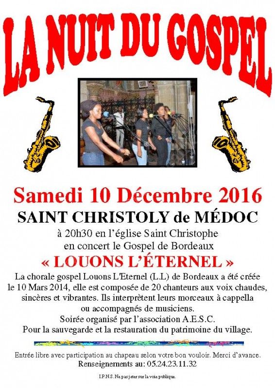 La chorale gospel Louons L'Eternel (L.L) de Bordeaux a été créée le 10 Mars 2014, elle est composée de 20 chanteurs aux voix chaudes, sincères et vibrantes. Ils interprètent leurs morceaux à cappella ou accompagnés de musiciens.