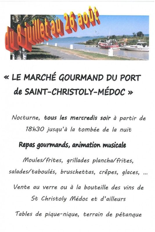 LE MARCHE GOURMAND DU PORT DE SAINT CHRISTOLY MEDOC à partir de 18h30 jusqu’à la tombée de la nuit