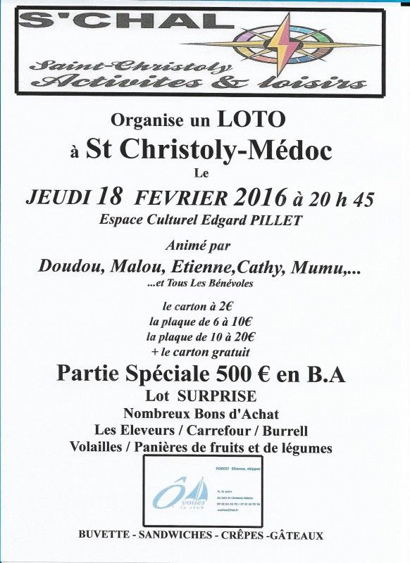Loto organisé par l'association Saint-Christoly Activités & Loisirs.