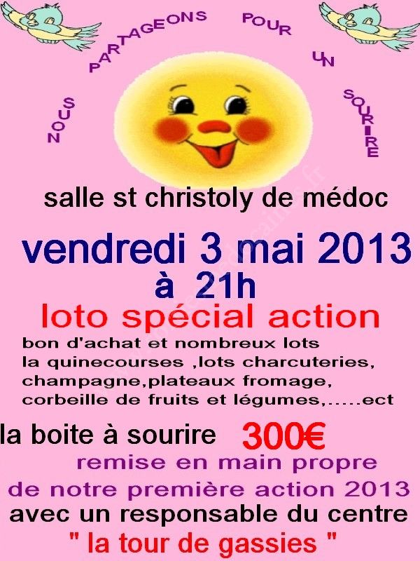 loto spécial action avec personnel mandaté du centre de "la tour de gassies" pour remise participation de nos lotos conventionné