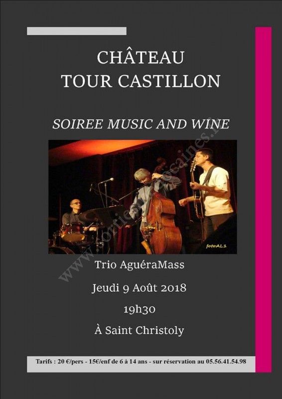 Dans un cadre exceptionnel au bord de l'Estuaire (selon conditions climatiques), sinon dans le chai à barriques, le Trio AguéraMass se produira autour d'une dégustation de vin accompagnée de tapas salés et sucrés.