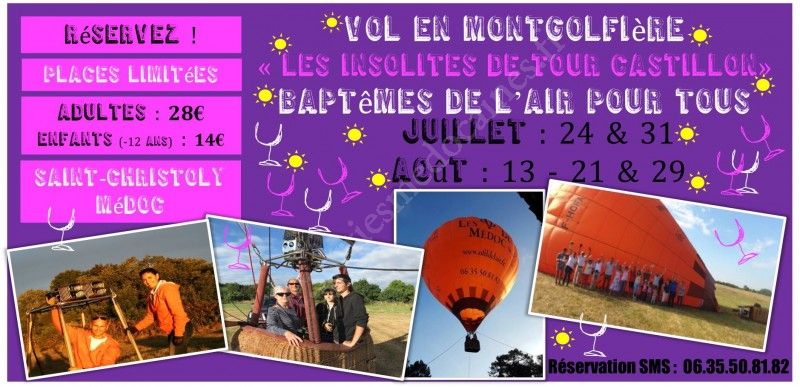 Ceci avant ou après votre ascension en Montgolfière à 50m de hauteur avec vues imprenables sur la Tour (encore debout), le carrelet, l'Estuaire et sur tout le merveilleux Vignoble de la famille Peyruse...Sensation, Émotion et moments insolites au programme !