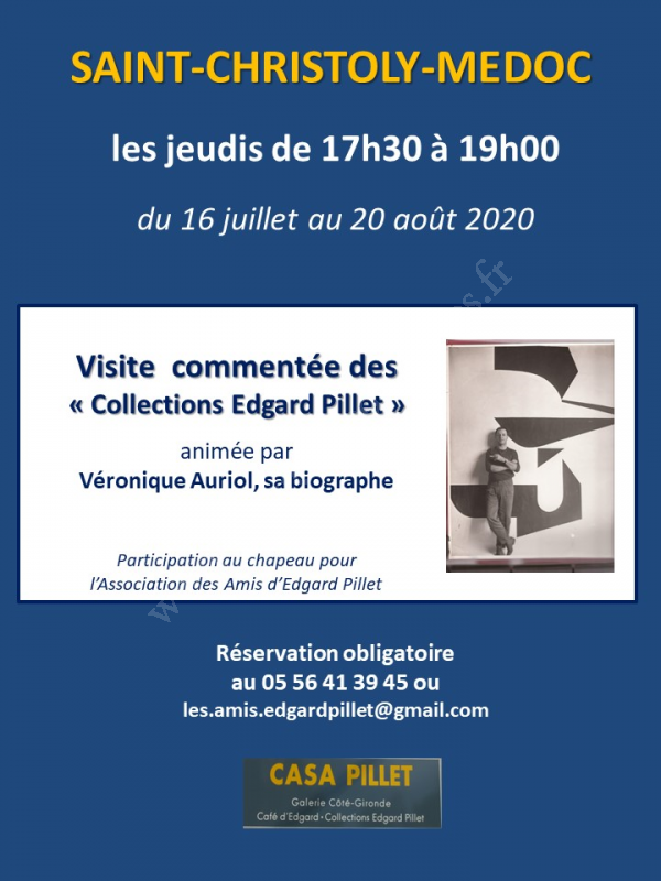 Chaque jeudi une visite-conférence est animée par Véronique Auriol, la biographe d' Edgard Pillet (1912-1996), un artiste abstrait de renommée nationale et internationale, natif du village de Saint-Christoly.