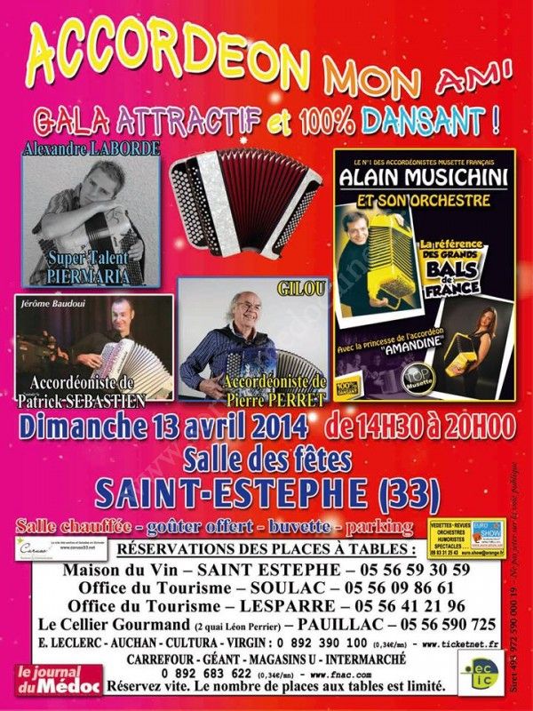 La dynamique commune de SAINT-ESTEPHE sera à nouveau à la fête le DIMANCHE 13 avril 2014 à l’occasion d’un GRAND GALA D’ACCORDEONS.