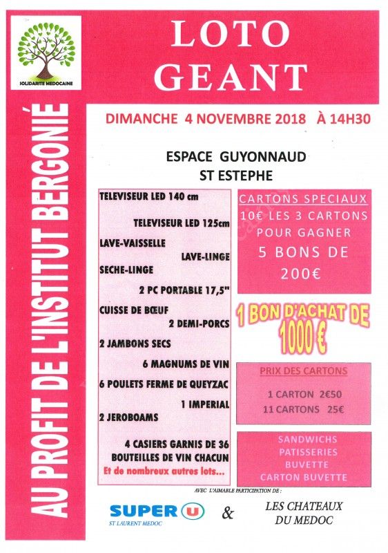Loto géant organisé par Solidarité Médocaine au profit de l'Institut Bergonié pour la recherche contre le cancer.