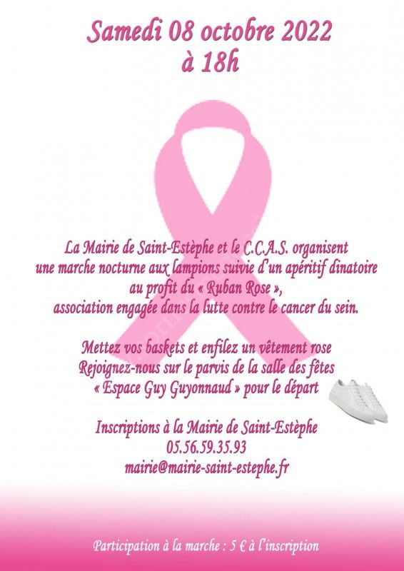 La Mairie de Saint-Estèphe et le C.C.A.S. organisent une marche nocturne aux lampions suivie d'un apéritif dinatoire au profit du "Ruban Rose" association engagée dans la lutte contre le cancer du sein.