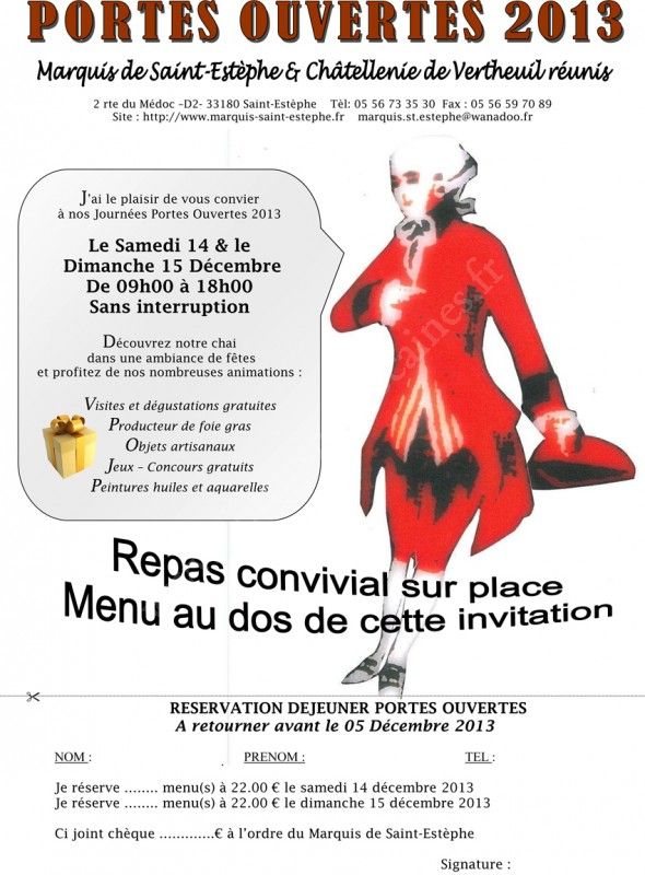 Le Marquis de Saint-Estèphe et la Châtellenie de Vertheuil ont le plaisir de vous convier à leurs Journées Portes Ouvertes 2013.