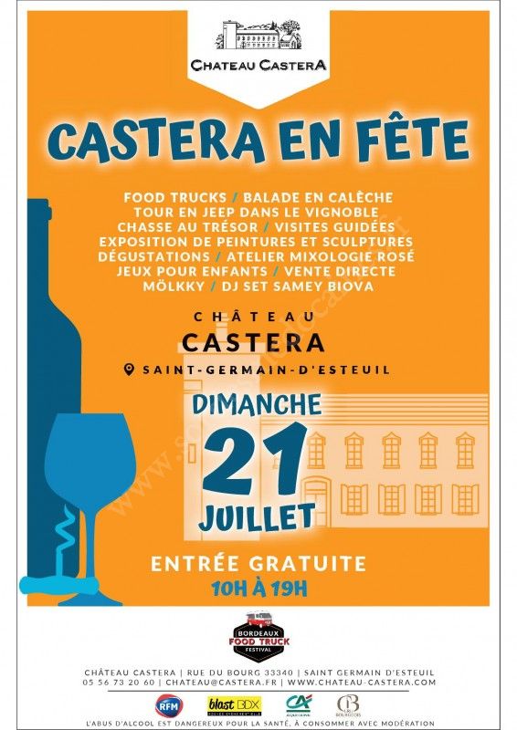 Pour la deuxième année consécutive, Château Castera s’associe au Bordeaux Food Truck Festival pour vous proposer une dizaine de Food Trucks pour déjeuner, prendre un verre ou manger sur le pouce dans le parc du Château Castera: Brasserie, Crêpes, Mexicain, Créole, Glaces artisanales, boissons et desserts.