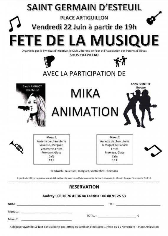 Fête de la Musique organisée par le Syndicat d'Initiative, le Club Vétérans de Foot et l'association des Parents d'Elèves.